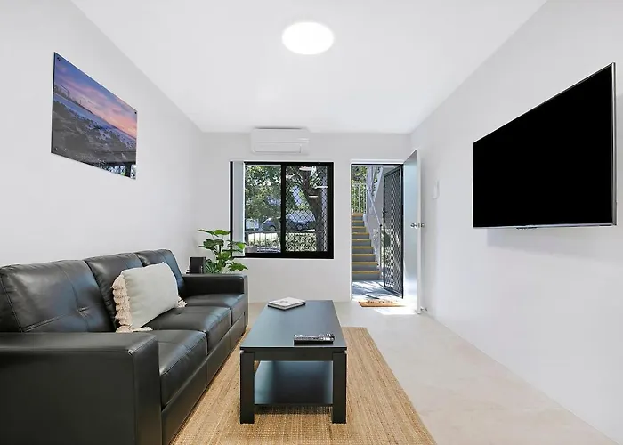 59m²のLeafy Hideout - Quiet Comfort Near Riverfront And Cbd ブリスベンアパートはブリスベン川から車で10分で、ヴィクトリア橋から3.2キロメートル離れた所の場所にあります。 アパートではWi-Fiを利用できますし、車でお越しのお客様のために無料の専用駐車場もあります。